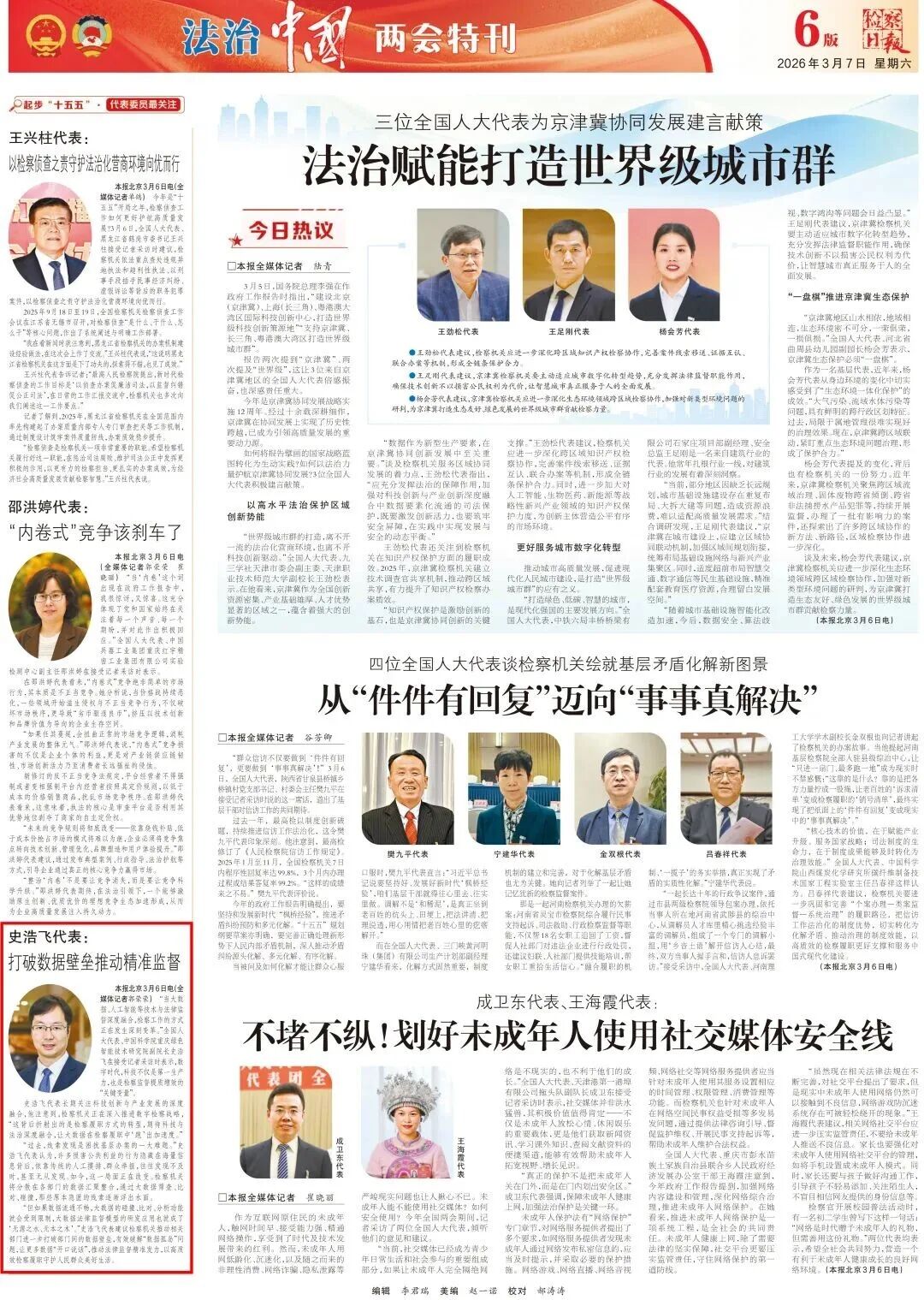 全国两会 | 史浩飞代表:打破数据壁垒推动精准监督