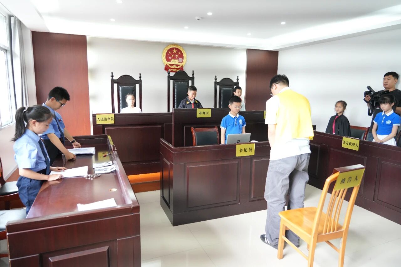 “砰!现在开庭。”随着法槌的敲响,一场特别的庭审拉开序幕。同学们换上制服,化身审判人员、公诉人、辩护人、法警等角色,以一起故意伤害案为脚本,有条不紊地模拟起了法庭调查、法庭辩论、被告人最后陈述等环节,完整展现了法庭审理的场景和全过程。