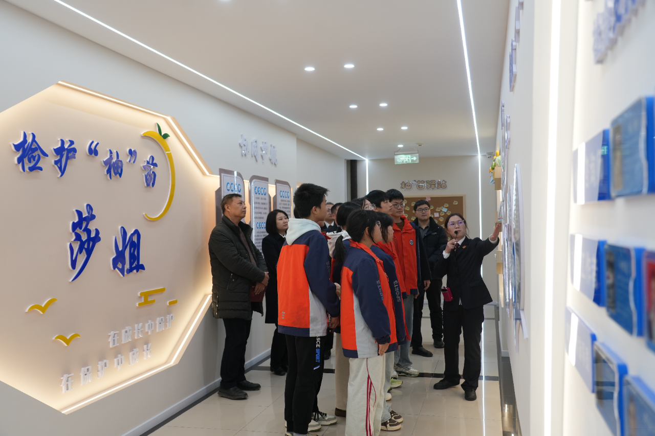 活动现场,与会人员依次走进模拟法庭、询问室、心理咨询室、模拟监室等各功能区域,身临其境地感受法治教育的多元场景。大家通过观看实物展示、研读案例展板等,深入了解梁平区检察院在青少年普法教育方面的创新探索与实践成果。在参观过程中,不少学生对展陈内容表现出浓厚兴趣,纷纷驻足提问,检察官们耐心聆听、细致解答,宪法知识随着这场沉浸式体验悄然浸润心田。