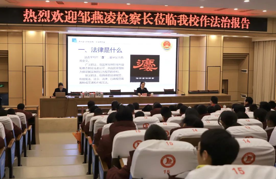 “‘法治’是一个永恒的主题。愿法治精神在你们手中薪火相传,愿你们能在社会主义的法治阳光中健康成长,愿你们都能成为担当民族大任的时代新青年!”邹燕凌检察长希望同学们能够做到崇尚法律,树立法治意识;遵守法律,养成良好习惯;学习法律,掌握自护技巧;宣传法律,传播正义之声。