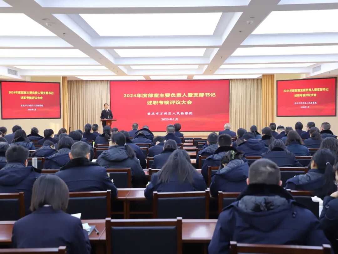 总结述职“亮答卷”,赓续奋斗“谱新篇”。1月16日,重庆市万州区检察院召开2024年度部室主要负责人暨支部书记述职考核评议大会。会议由我院党组成员、政治部主任赵晓萌主持。在家院领导、全体干警职工参加会议。
