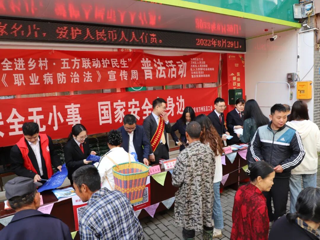 在五一国际劳动节来临之际,为持续推进职业病防治工作,保障广大劳动者职业健康权益,关爱劳动者心理健康,万州区检察院联合区总工会、区法院、区人社局、区司法局及相关律师事务所前往辖区地宝土家族乡“赶场”,搭建“一站式服务台”,开展智慧普法、现场维权、安全教育工作。