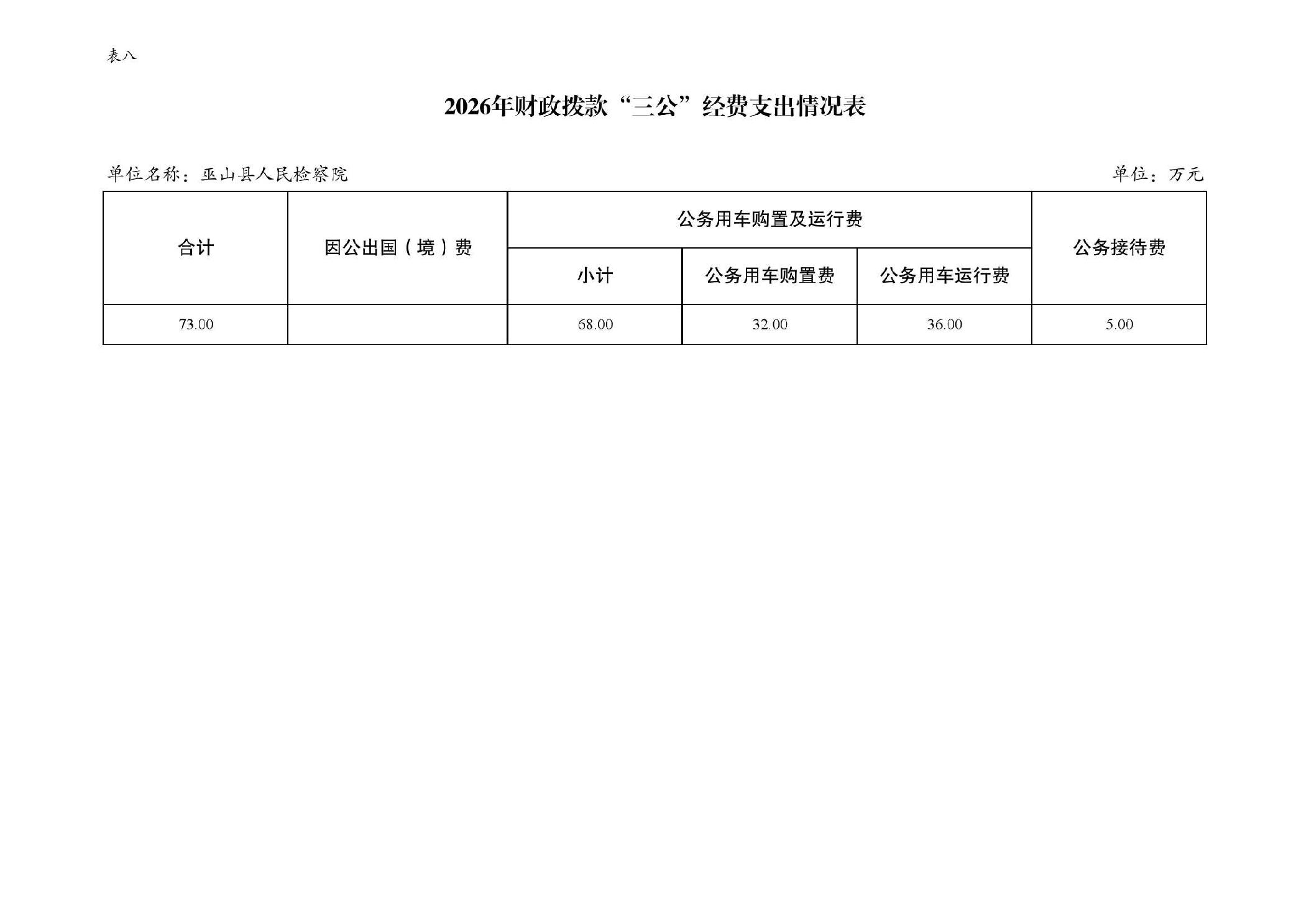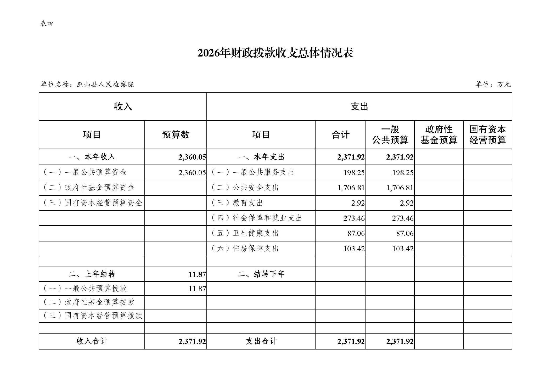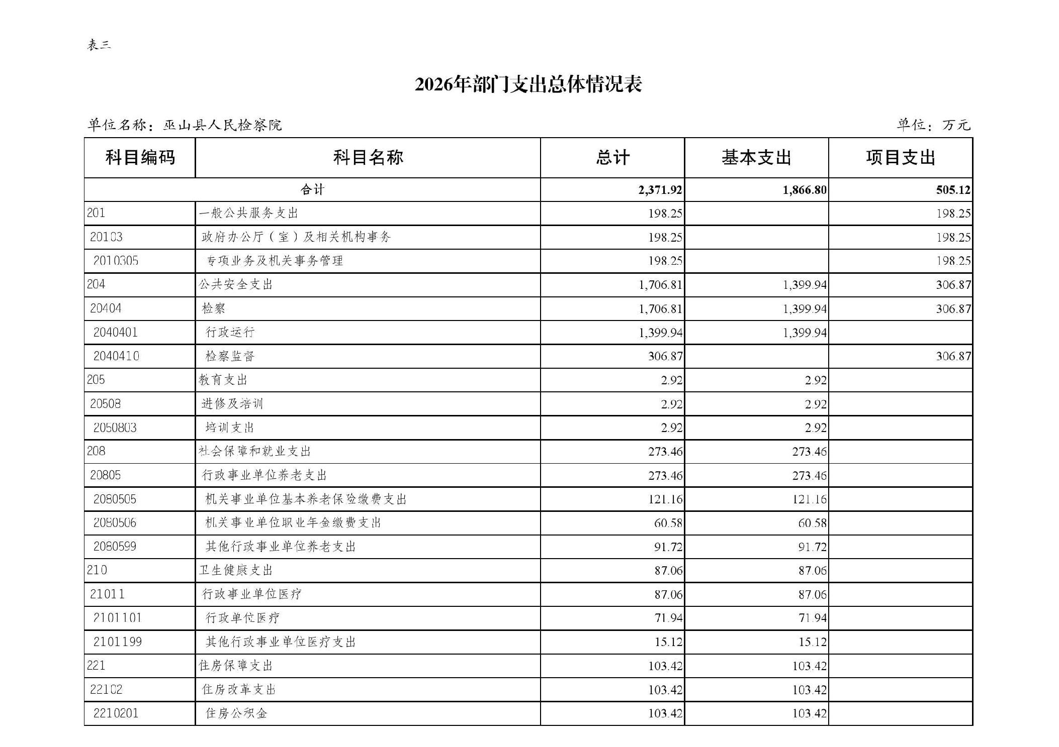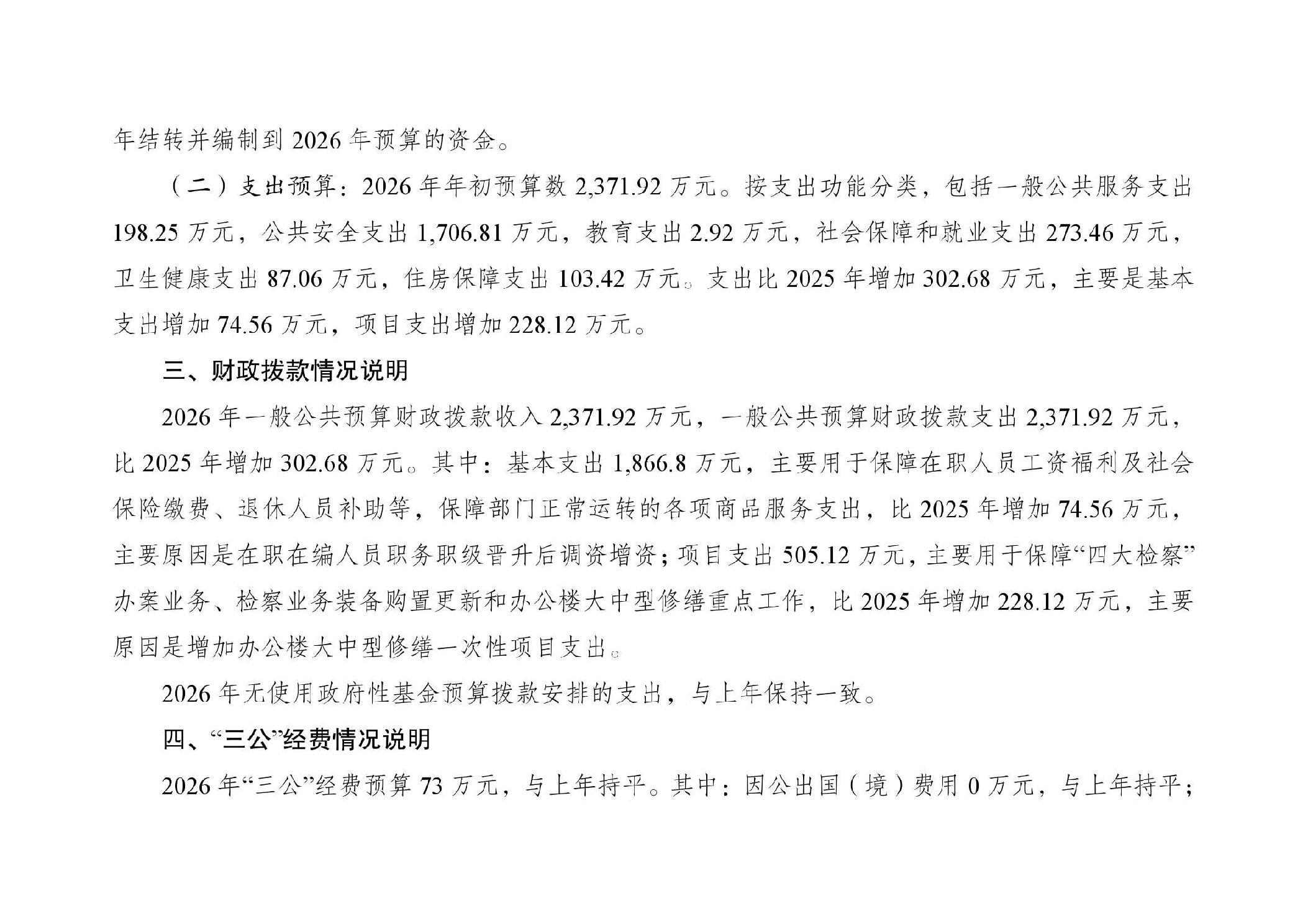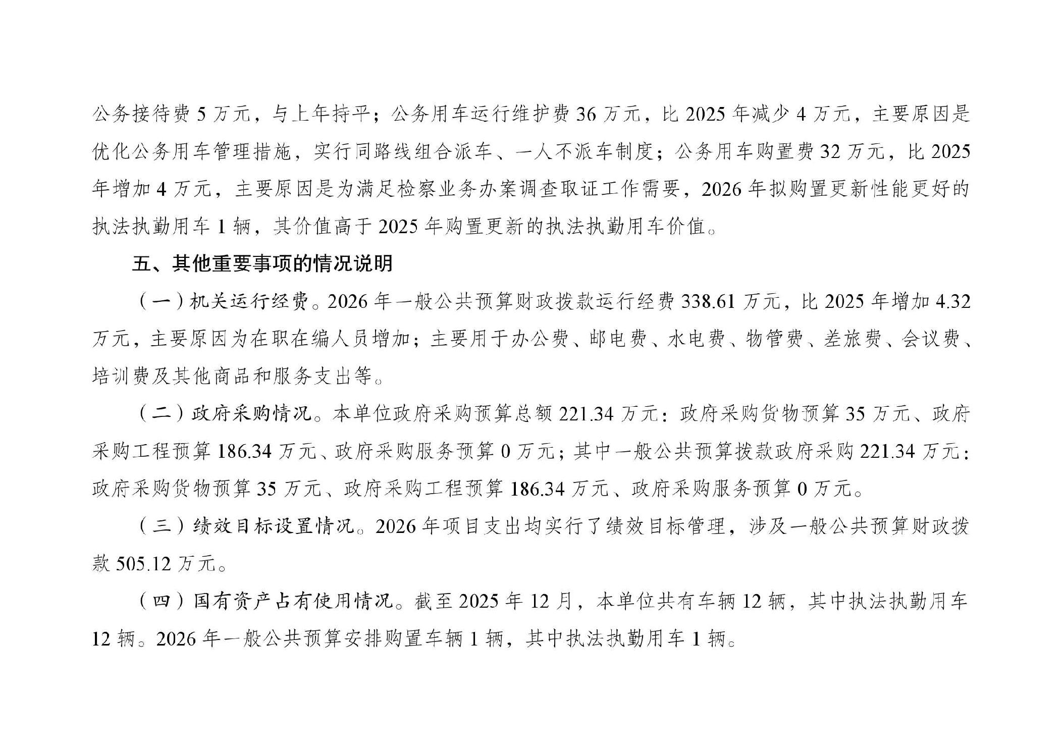 巫山县人民检察院2026年部门预算情况说明