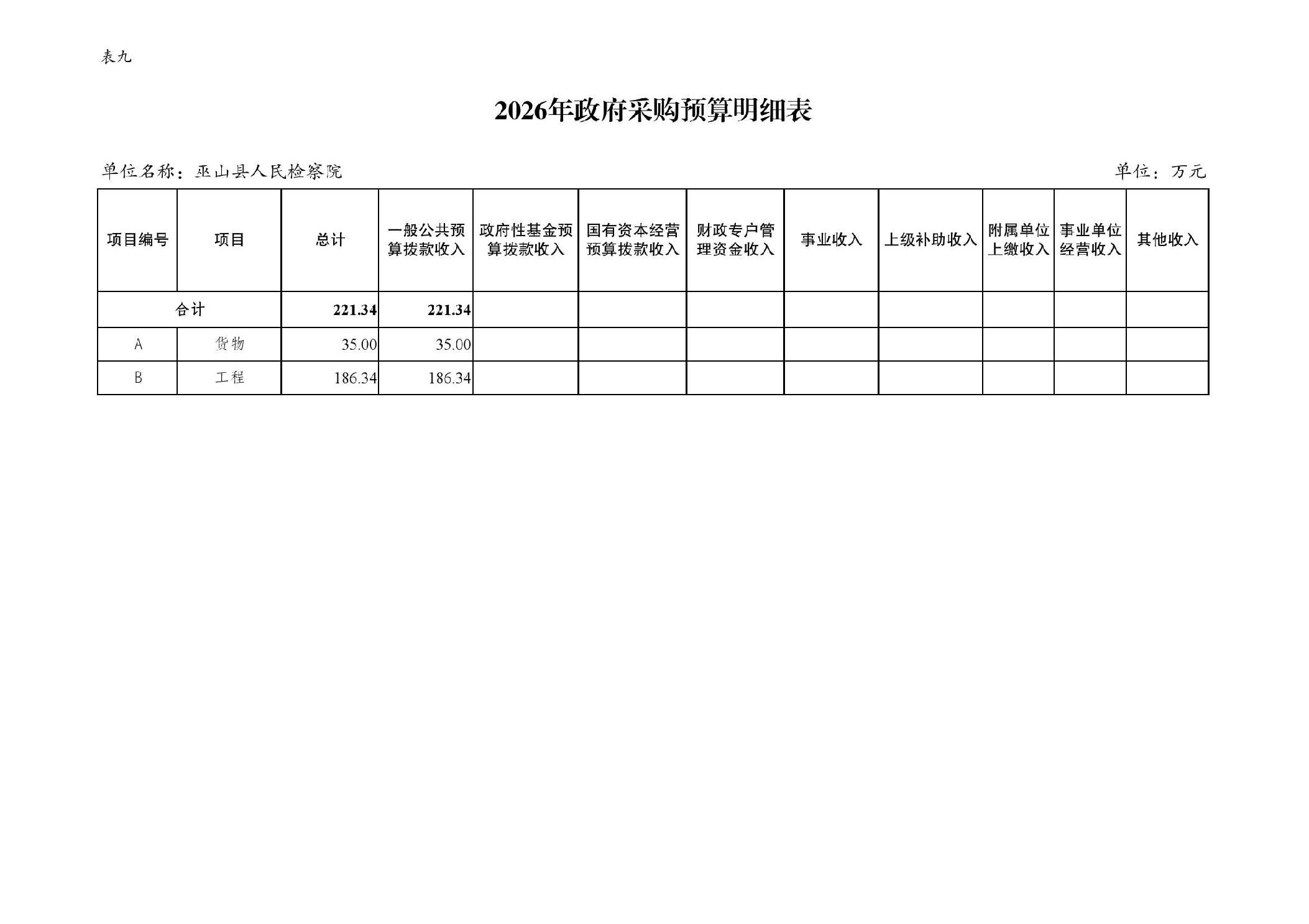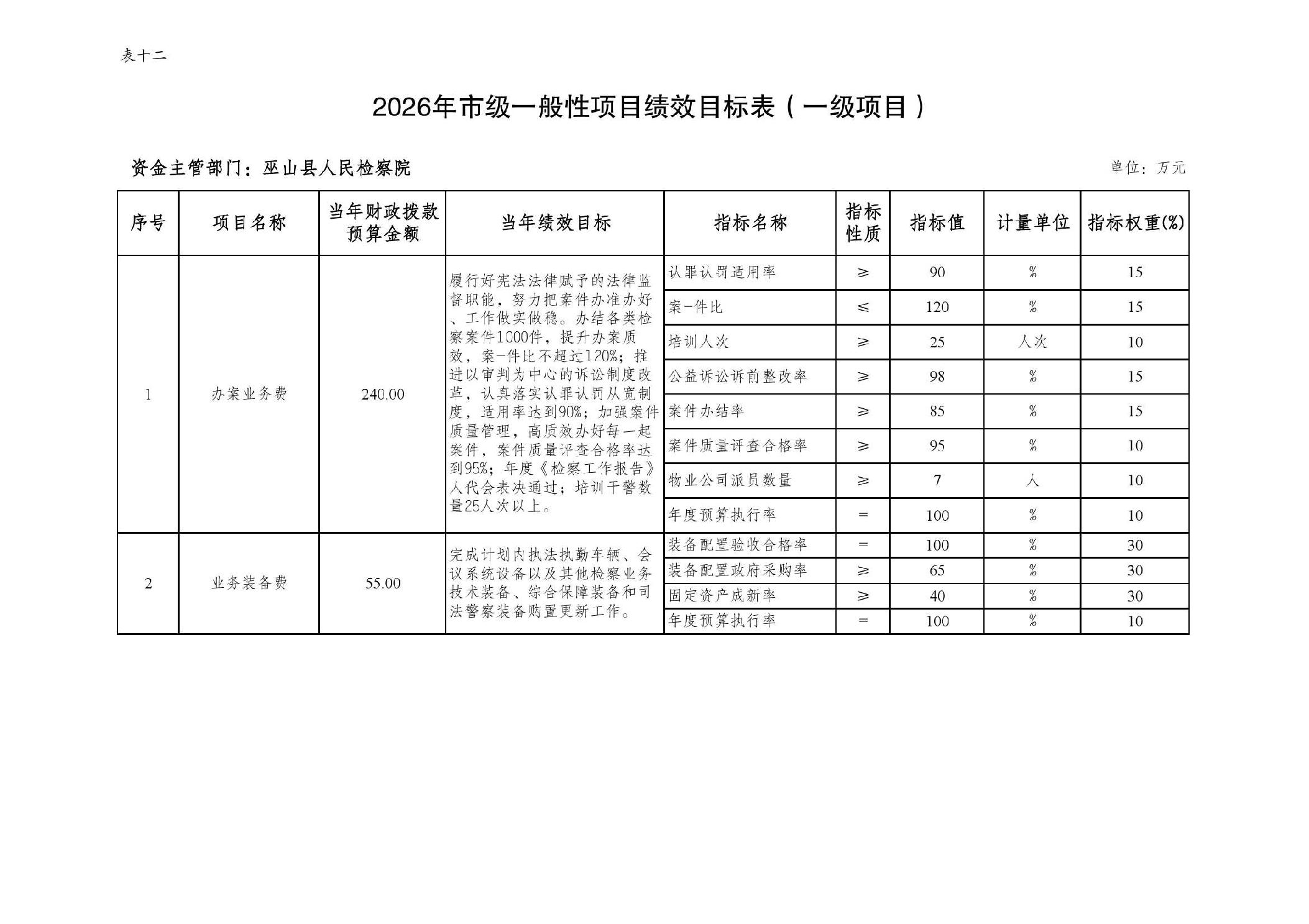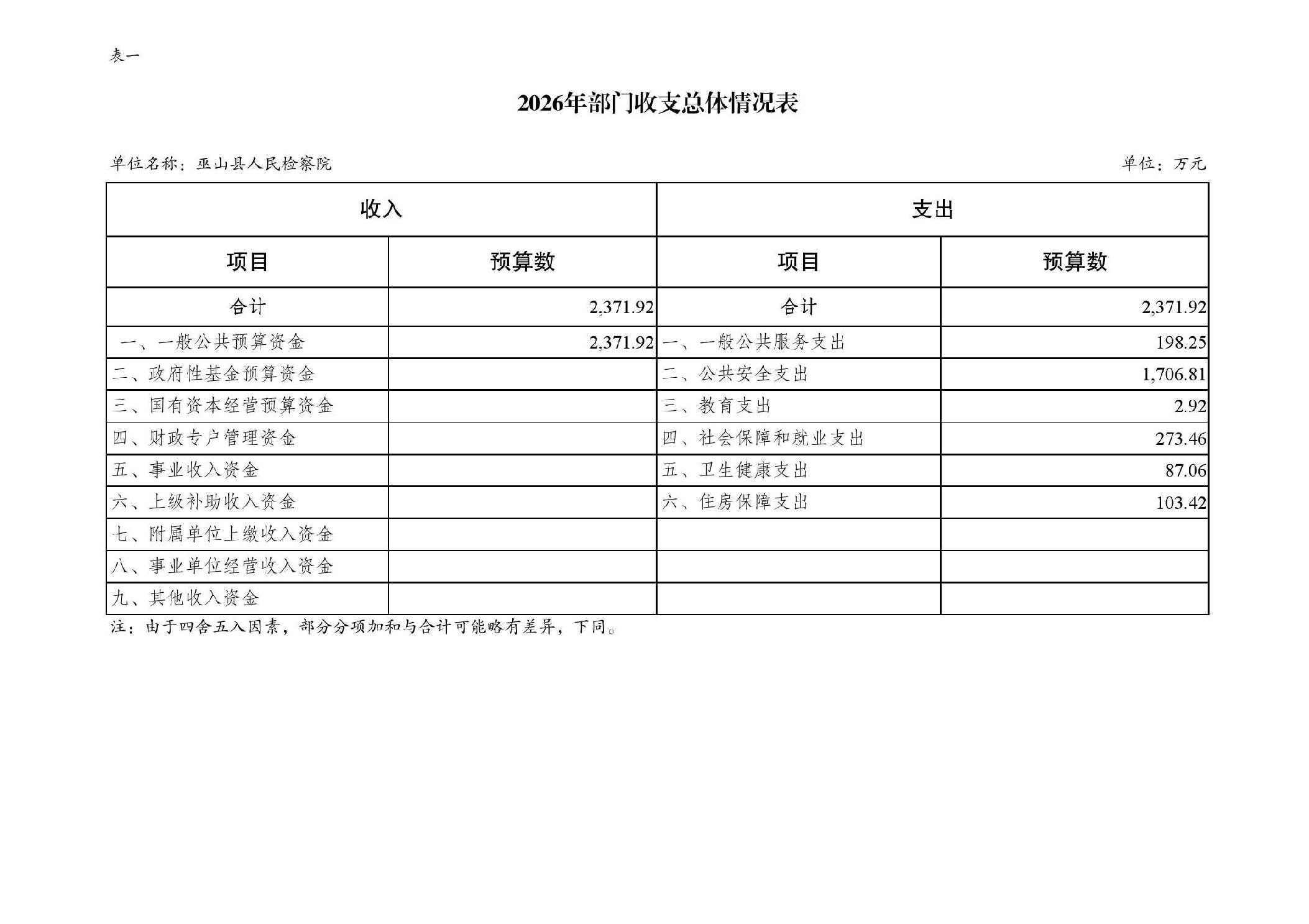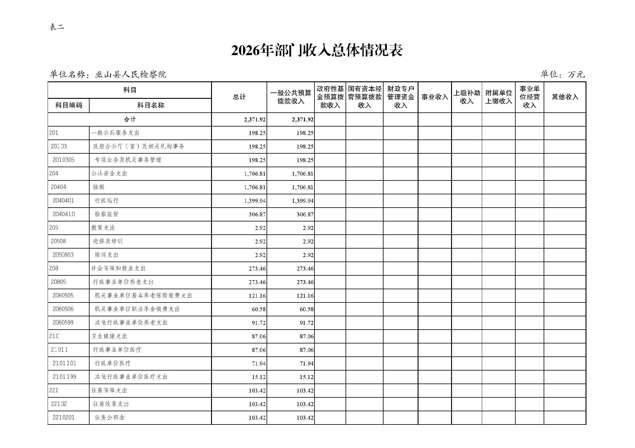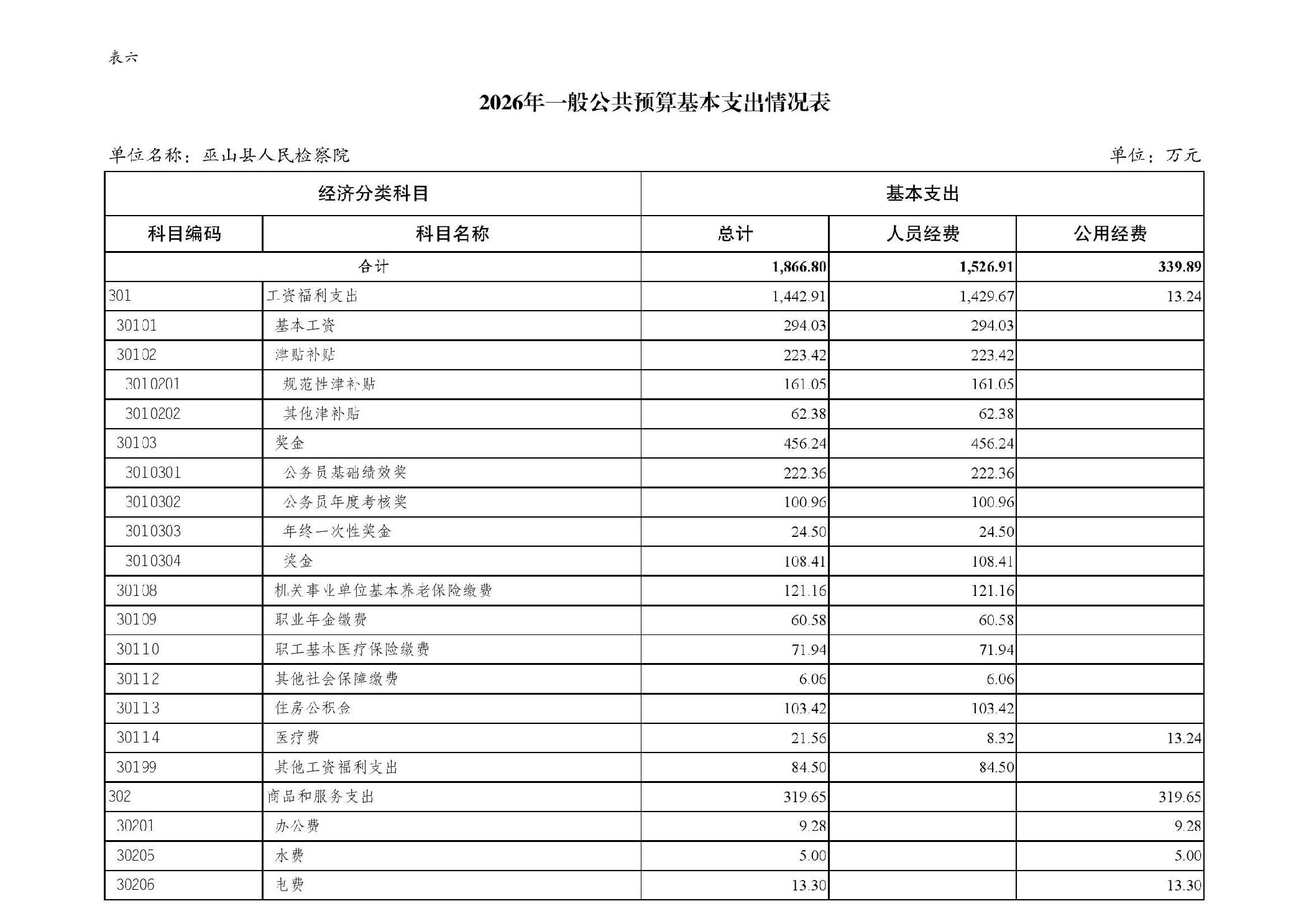 巫山县人民检察院2026年部门预算情况说明