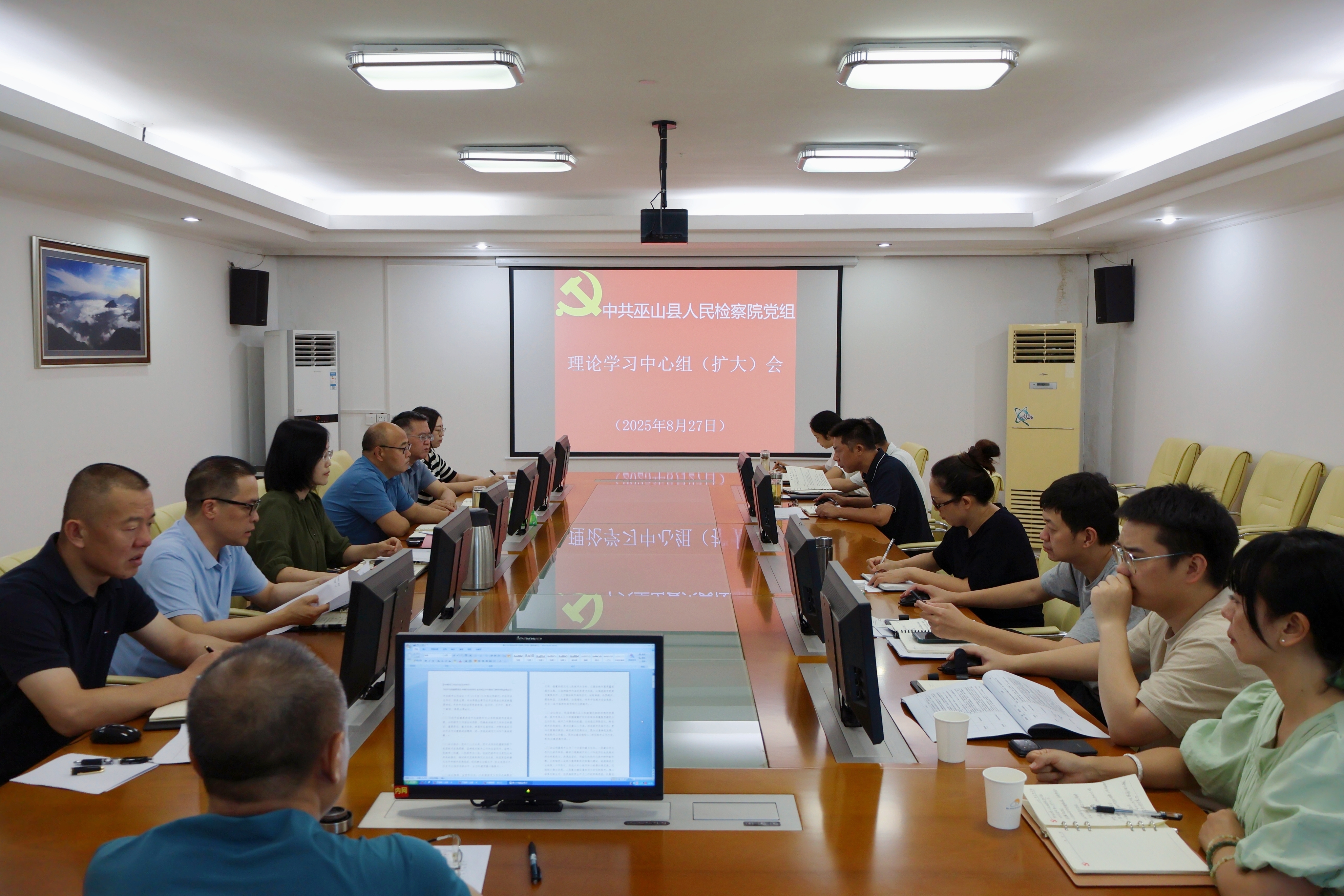 8月27日下午,我院召开党组理论中心组(扩大)2025年第8次会议,会议由院党组书记、检察长侯俊霞主持,院班子成员、检委会专职委员、中层正职、法警队长参加会议。