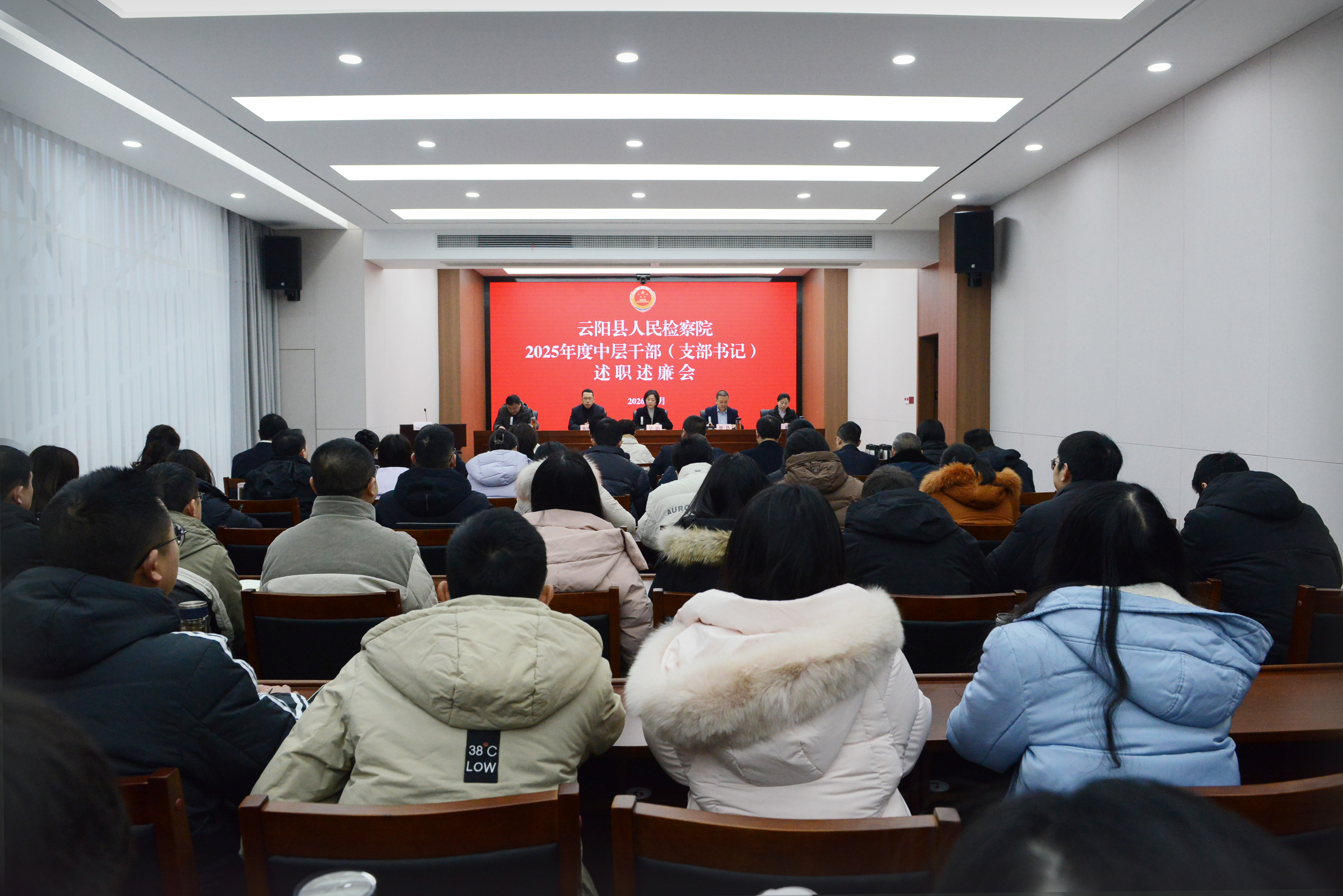 1月21日,我院召开2025年度中层干部(支部书记)述职述廉会,院领导、检委会专职委员及全体干警参会。