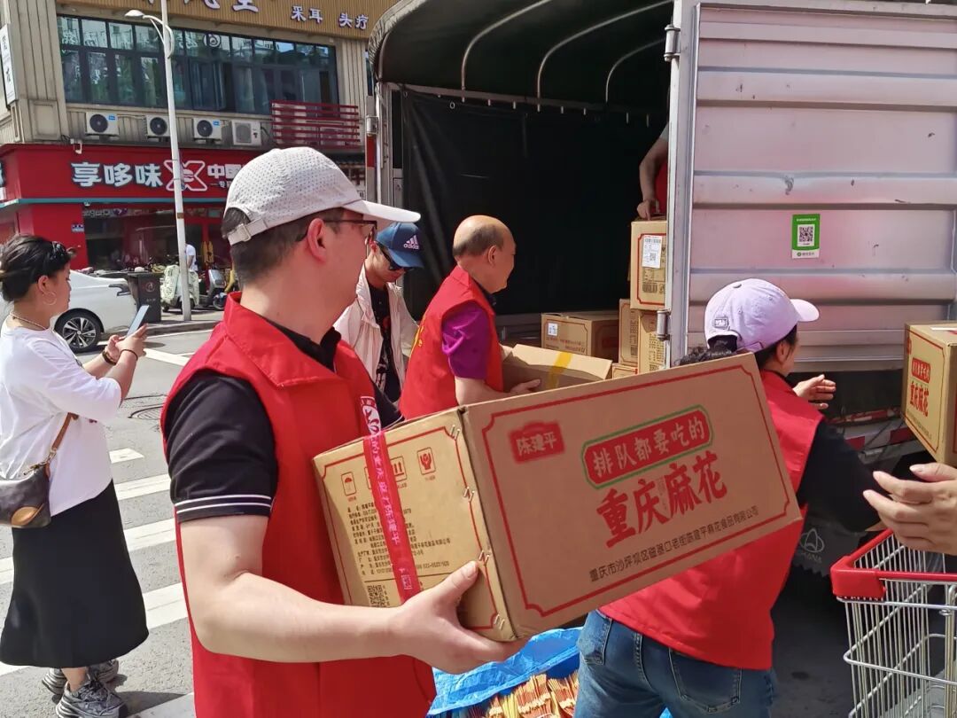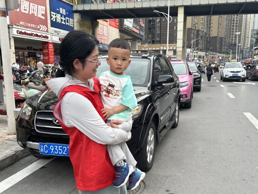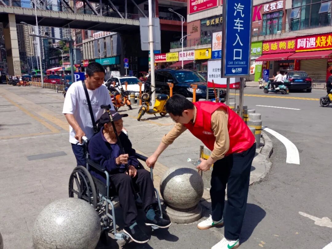 “您别急,绿灯还有28秒呢。”干警小唐看着拄着拐杖的奶奶步伐蹒跚,特意放慢脚步,直至将老人送到马路对面的卤鹅店。不远处,干警小程正带着四名干警帮路边摊主搬运成箱的重庆麻花。室外气温高达34℃,汗水湿透了他们的背心,摊主老周赶忙递上毛巾:“志愿者同志歇会儿吧,今天要不是你们帮忙,这些货起码得搬半个小时,太感谢你们啦!”