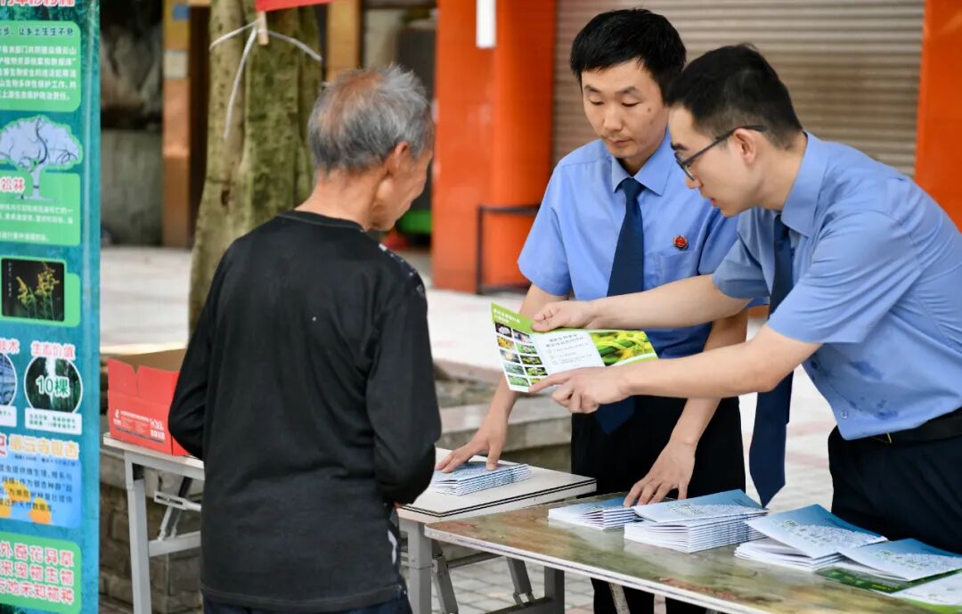 5月21日上午,是重庆市北碚区澄江镇的赶集日,集市上人头攒动,人声鼎沸。在集市附近,来自重庆市人民检察院第一分院(以下简称“一分院”)与重庆市北碚区人民检察院的检察官们,联合缙云山生物多样性法治保护工作站的林业专家,以及西南大学的检察机关“益心为公”志愿者们,在国际生物多样性日来临之际,以“守护生物多样性 共筑美好家园”为主题进行生物多样性保护普法宣传。