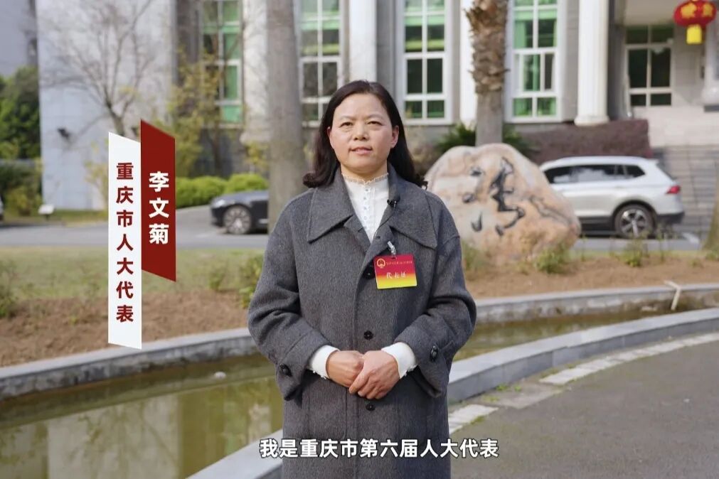大家好,我是重庆市第六届人大代表、大足区龙岗街道办事处龙岗村党支部书记、村委会主任李文菊。
