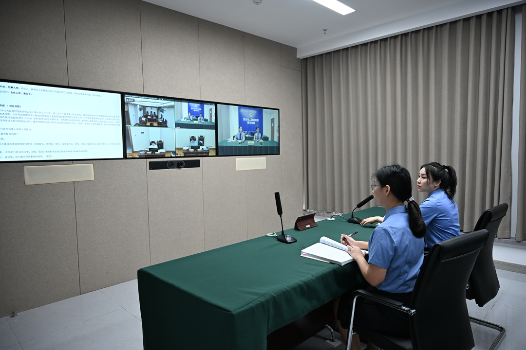 重庆市检察院五分院联合成渝金融法院启动“云上共享法庭”,实现跨省域庭审。