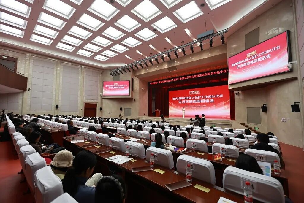 1月14日,“时代楷模”重庆检察未成年人保护工作团队代表先进事迹巡回报告会在渝中区举行。来自渝中区党政机关、政法系统、教育战线、企事业单位、基层社区及学生群众代表350余人齐聚一堂,共同聆听了一场关于“法治守护成长”的深情讲述。