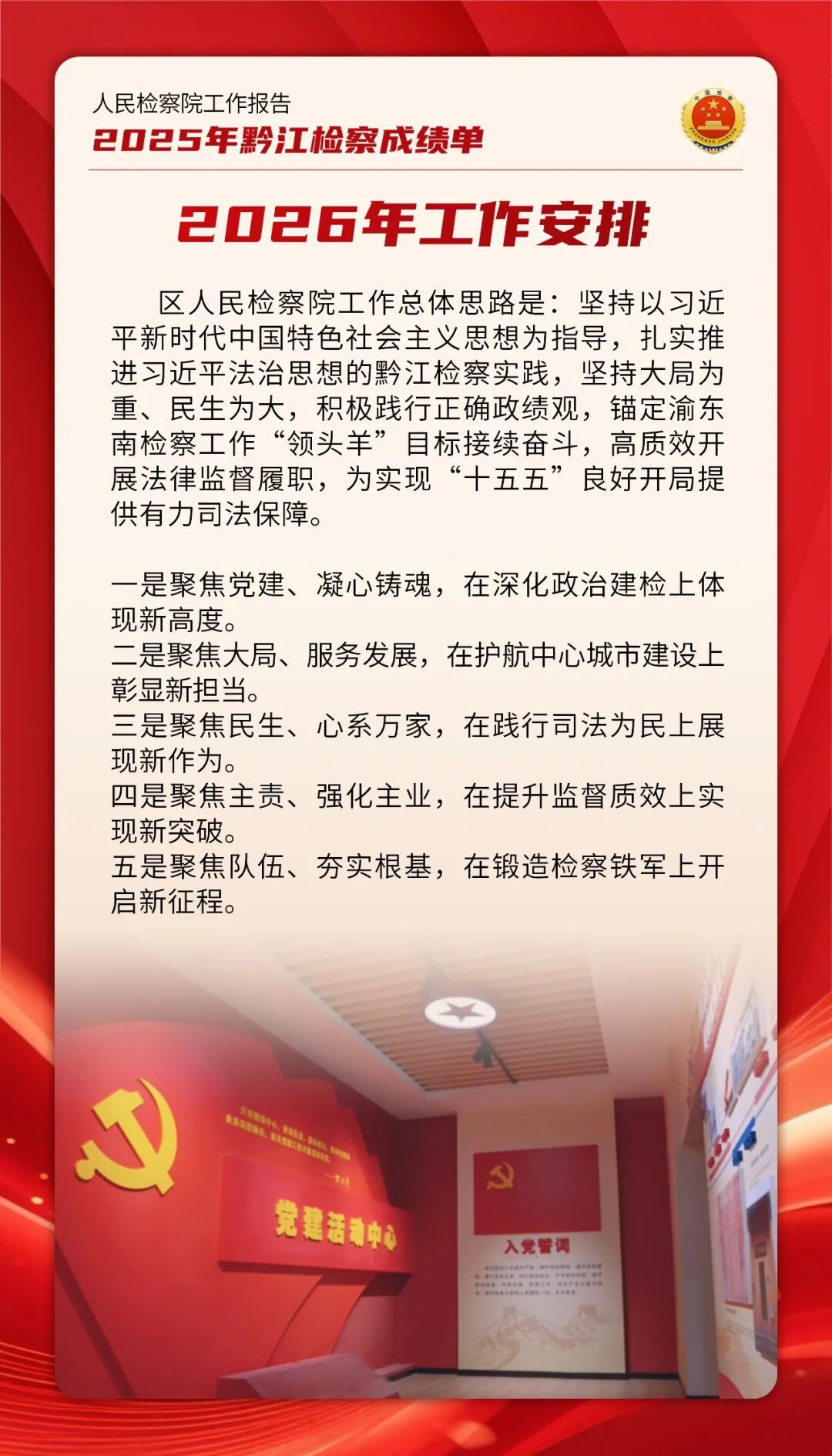2026年2月5日,在重庆市黔江区第五届人民代表大会第七次会议上,重庆市黔江区人民检察院党组书记、检察长彭波向本次大会作检察工作报告。