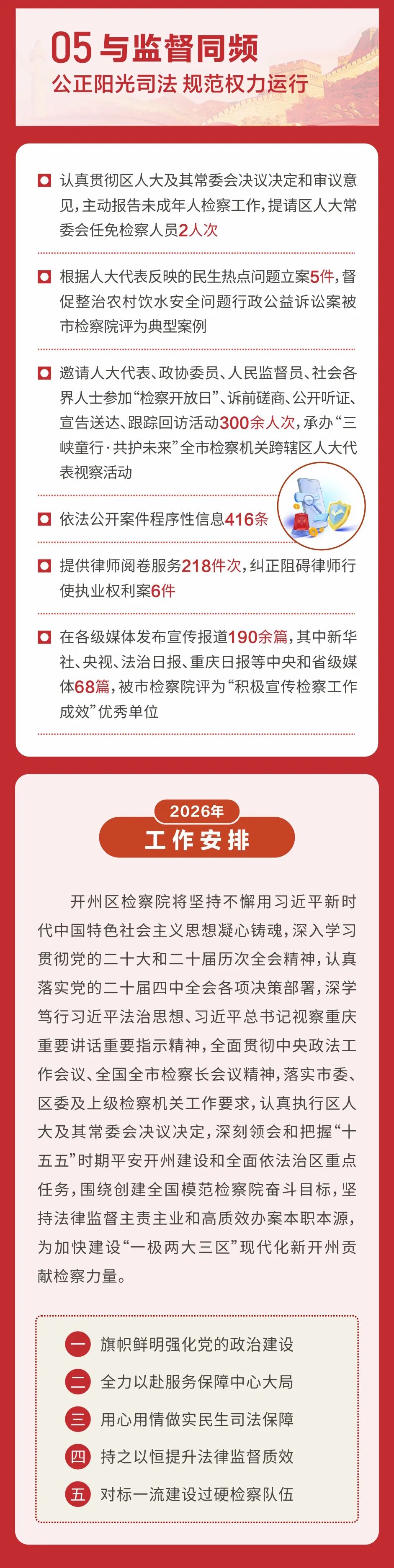 2026年2月5日,在重庆市开州区第十八届人民代表大会第九次会议上,重庆市开州区人民检察院党组书记、检察长杨德伟向大会作检察工作报告,并接受大会审议。