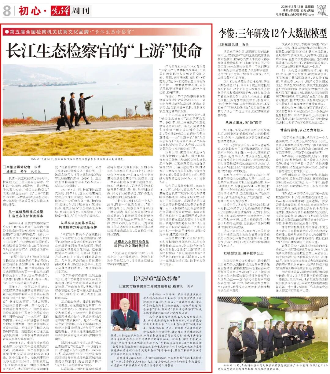 2026年2月12日,《检察日报》第8版刊登《长江生态检察官的“上游”使命》一文,内容如下:
