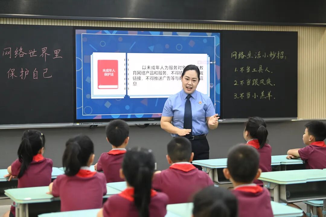 ▲9月1日,重庆渝北区巴蜀小学,“渝检护‘未’团队代表”梅玫和孩子们在一起。记者 刘力 摄/视觉重庆