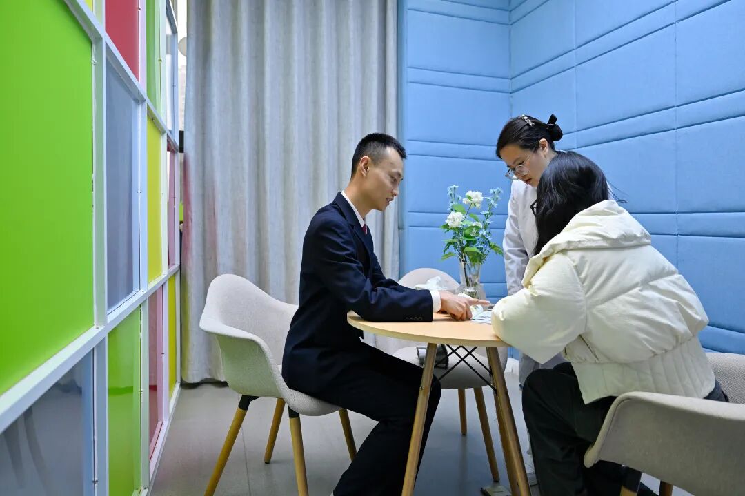 ▲1月7日,重庆市中医院南桥寺院区一站式询问救助中心内,检察官与青少年交谈。记者 张春晓 摄/视觉重庆