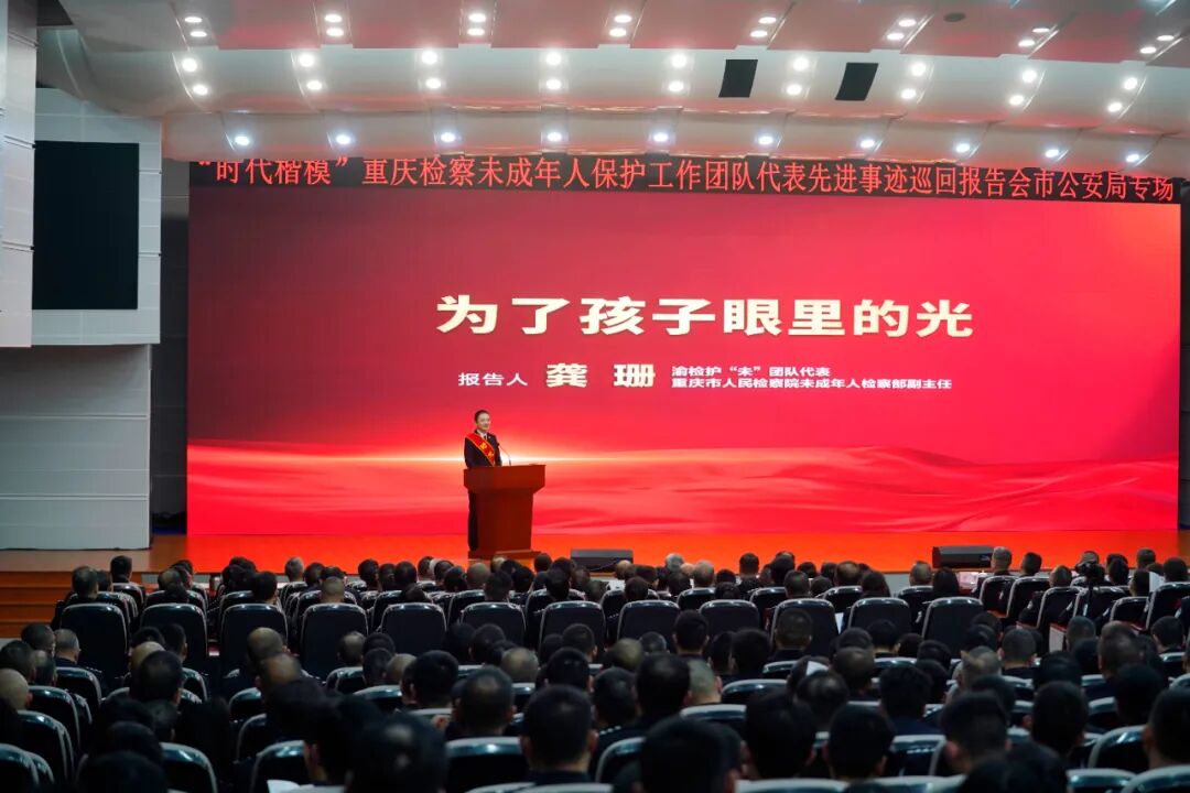 12月5日,“时代楷模”重庆检察未成年人保护工作团队代表先进事迹巡回报告会走进重庆市公安局。先进模范的感人事迹与崇高精神,在这支守护山城平安的坚强队伍中引发了强烈共鸣,为公安机关进一步深化未成年人保护工作注入了新的思想动力与实践启迪。