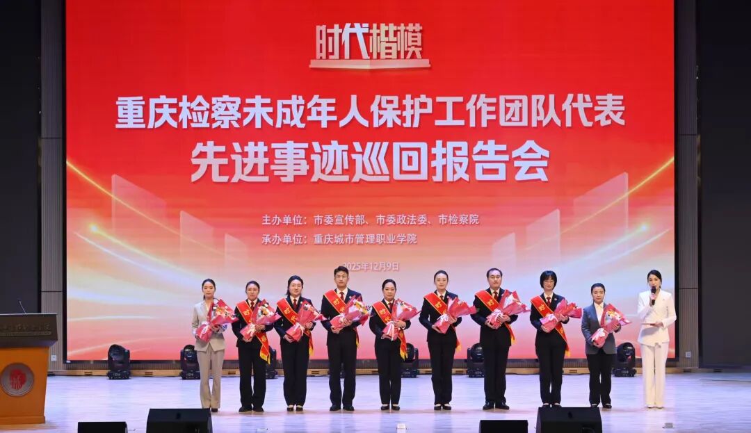 12月9日,“时代楷模”重庆检察未成年人保护工作团队代表先进事迹巡回报告会在重庆城市管理职业学院举行。
