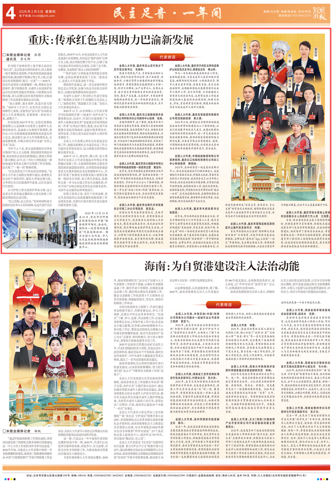 2026年2月5日,《检察日报》第4版半版刊登《重庆:传承红色基因助力巴渝新发展》一文,内容如下: