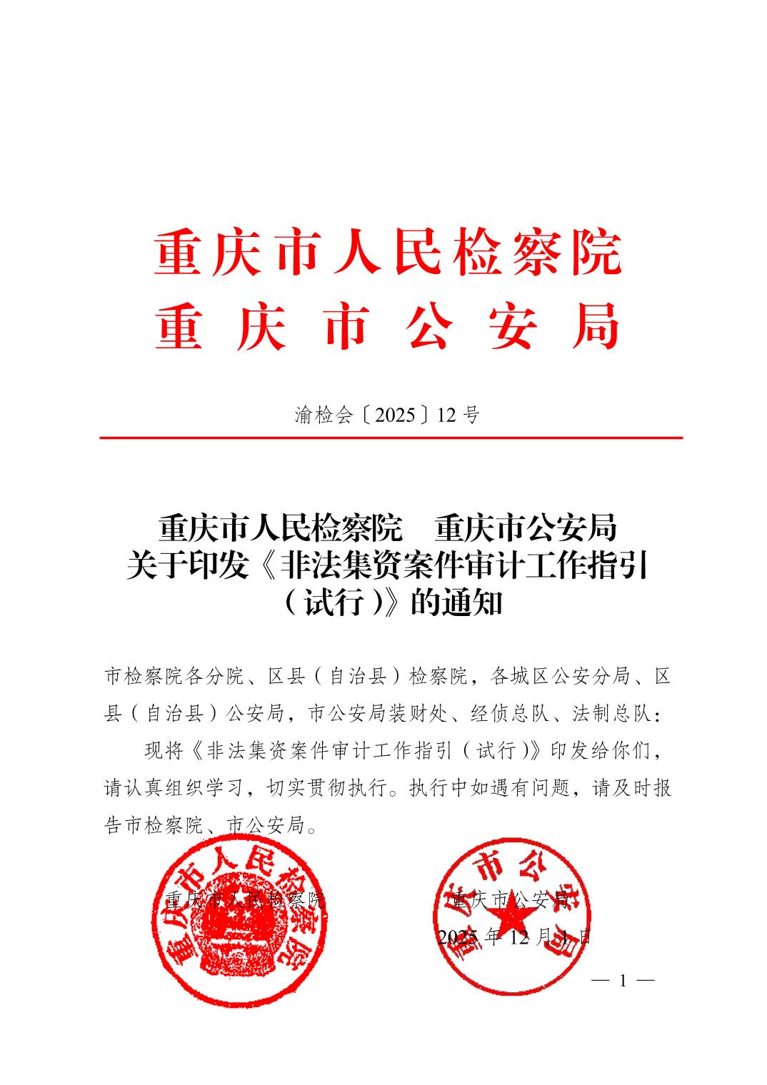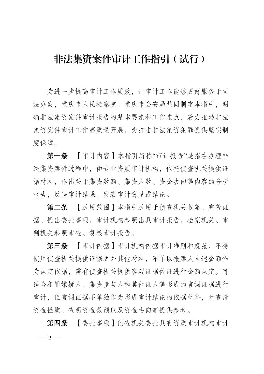 重庆市人民检察院 重庆市公安局关于印发《非法集资案件审计工作指引(试行)》的通知