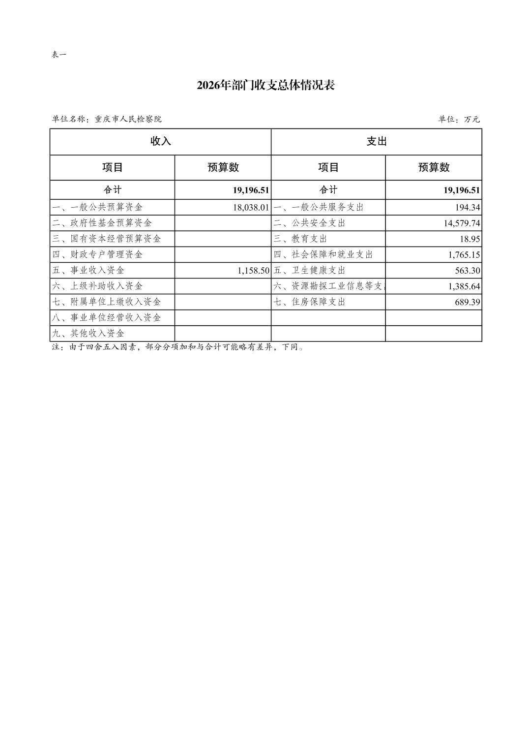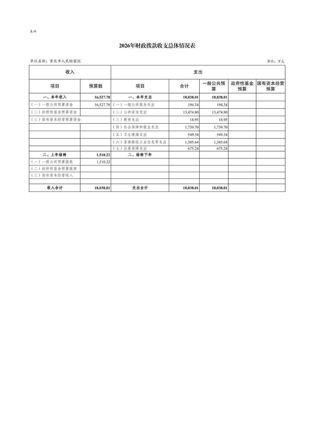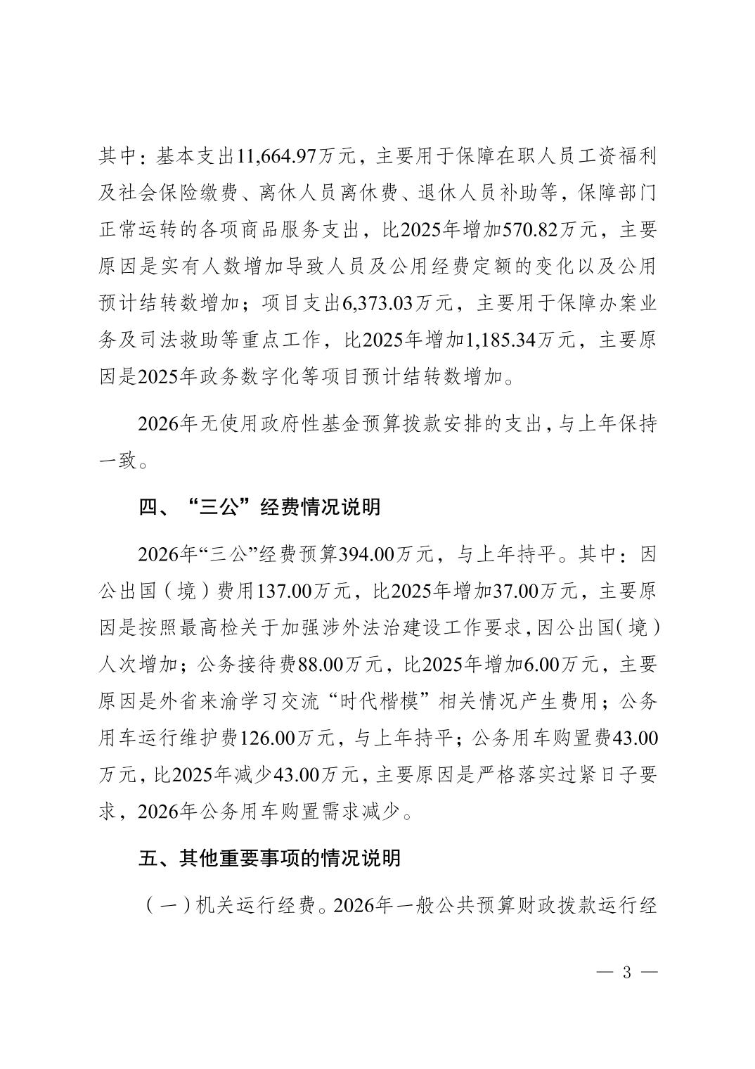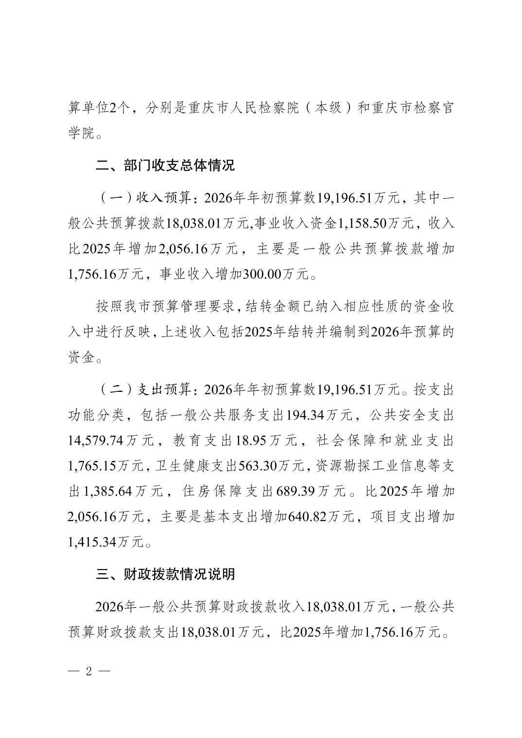 重庆市人民检察院2026年部门预算情况说明