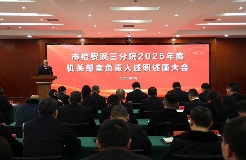 202622日,市检察院三分院召开机关党支部书记述职和部室负责人述职述廉大会。会上办公室党支部15名党支部书记、部室负责人逐一登台现场述职,派驻涪陵监狱检察室、机关党委进行书面述职。院党组书记、检察长陈宏,院领导班子成员,检委会专职委员,二级高级检察官,二级巡视员及全体干警参加会议。院党组成员、政治部主任严辉主持会议。