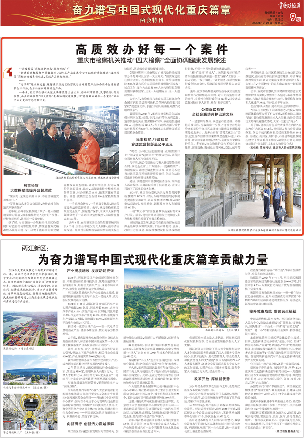 2025年1月21日,《重庆政协报》第9版半版刊登《高质效办好每一个案件——重庆市检察机关推动“四大检察”全面协调健康发展综述》一文,内容如下:
