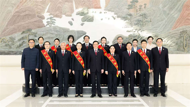 12月15日,最高人民检察院举行“时代楷模”渝检护“未”团队代表先进事迹报告会。会前,最高检党组书记、检察长应勇等领导会见报告团成员并合影。