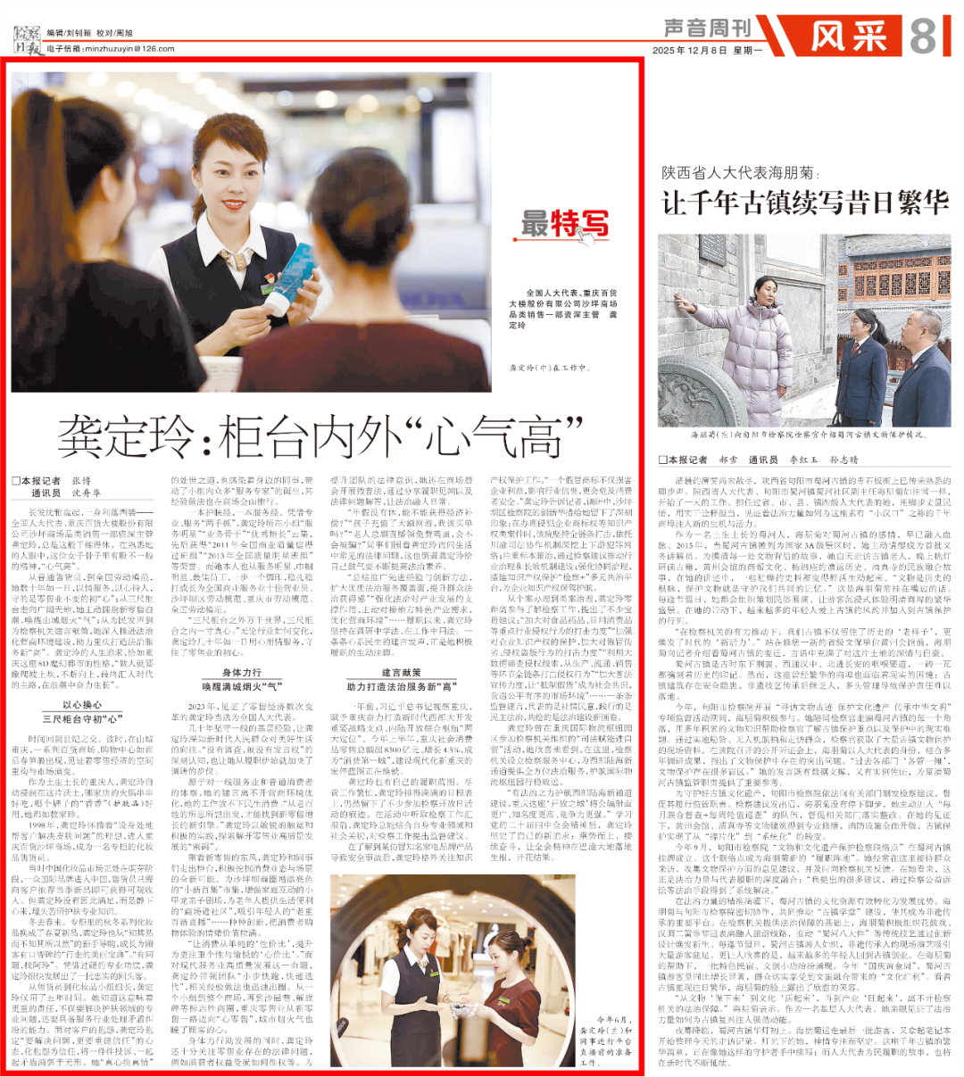 2025年12月8日,《检察日报》第8版刊登《龚定玲:柜台内外“心气高”》一文,内容如下:
