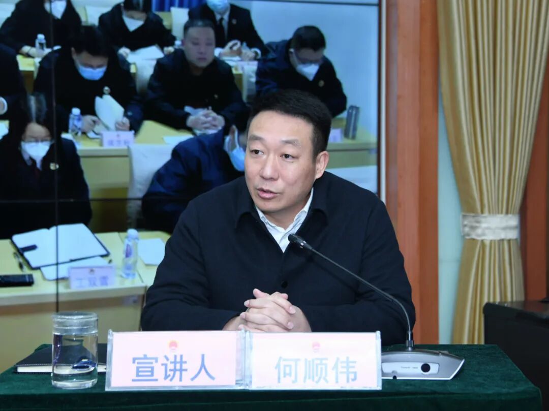 何顺伟强调,当前和今后一个时期,我们要把深入学习宣传贯彻党的二十大精神作为一项首要的政治任务,要紧密团结在以习近平同志为核心的党中央周围,高举中国特色社会主义伟大旗帜,全面贯彻习近平新时代中国特色社会主义思想,牢记空谈误国、实干兴邦,坚定信心、同心同德,埋头苦干、奋勇前进,为全面建设社会主义现代化国家、全面推进中华民族伟大复兴而团结奋斗!