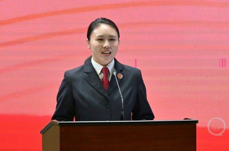 重庆市璧山区法院法官助理韩丹讲述了《长大后,我就成了你》的故事。十年前,一堂梅玫主讲的法治课在她心中种下光的种子,随后,她在高考坚定地报考法学专业,又攻读法律专业研究生,如今,终于成为了一名政法干警。从被守护到守护者,她是“渝检护‘未’”路上最动人的回响。