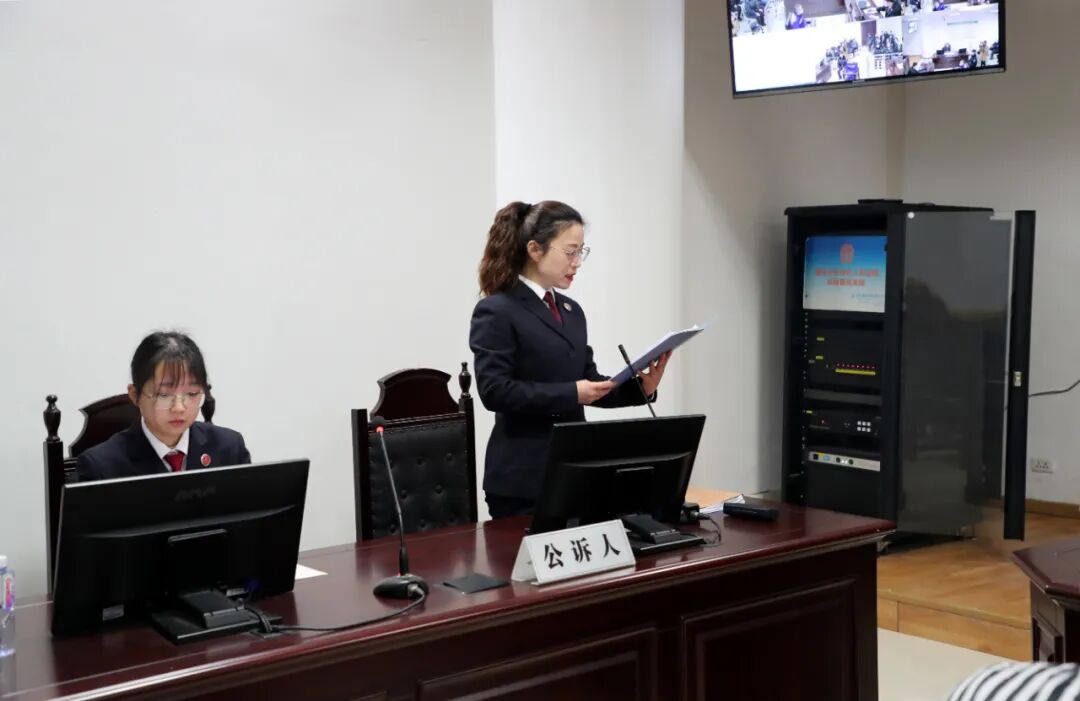 庭审现场,案件承办检察官庄严地宣读了起诉书,根据法庭调查情况对被告人进行详细讯问,综合运用多媒体示证的方式,对其犯罪事实进行了有理、有据、有力的指控,并结合该案例对现场人员开展了生动的法制教育。