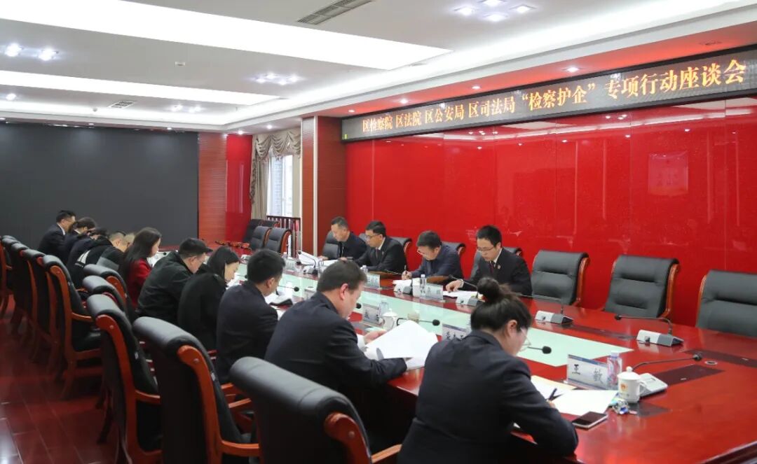 区司法局召开“检察护企”专项行动座谈会,相关单位领导及部门负责人参会。