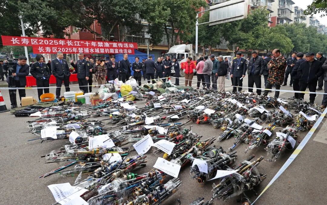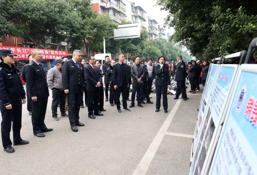 “实施‘十年禁渔’是保护长江流域生态环境和渔业资源的重要举措,按照有关规定,每年3月1日至6月30日期间,全市长江干流和重要支流以及其他重点水域禁止垂钓。”启动仪式上,市、区相关部门单位领导进行致辞发言,部分人大代表、政协委员、人民监督员、“益心为公”志愿者等受邀全程参加本次活动。“各位乡亲,炸鱼、电鱼、网鱼、毒鱼都是违法的,休闲垂钓也要使用合法合规的钓具,要在符合规定的水域内垂钓。”活动现场,区检察院、区农委等相关部门工作人员通过播放禁渔知识宣传音频、树立禁渔成效展板、集中销毁涉案渔具等形式,用通俗易懂的方式将法律知识“送到”群众身边,增强群众对各项禁渔政策、法规的了解,并号召群众从自己做起、杜绝非法捕捞行为,鼓励广大市民积极举报违法犯罪线索,让长江大保护、长江十年禁渔等理念更加深入人心。活动现场,长寿区检察院、区公安局、区农业农村委员会还联合发布了《惩治长江流域非法捕捞水产品犯罪典型案例》,充分发挥了典型案例的警示教育作用,以身边案向群众普及身边法,让大家更加直观地理解非法捕捞形式、抵制非法捕捞行为,形成共同保护长江“母亲河”的浓厚氛围。