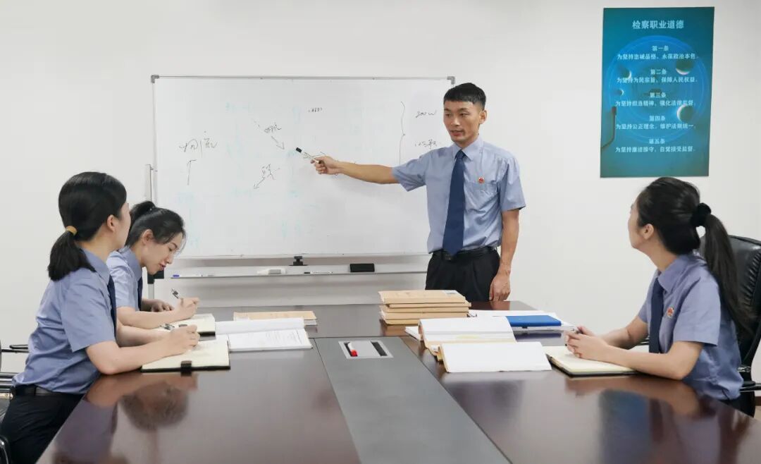 2024年8月,上海铁路运输检察院检察官就案件进行讨论。