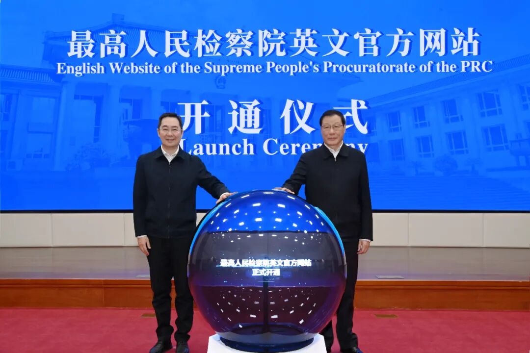 最高检党组书记、检察长应勇与中国日报社社长兼总编辑曲莹璞共同启动开通最高检英文官方网站。