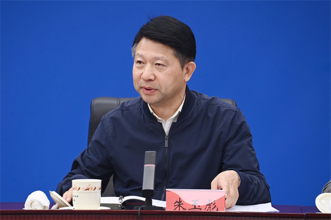 中央政法委宣传教育局一级巡视员朱玉彪发言。