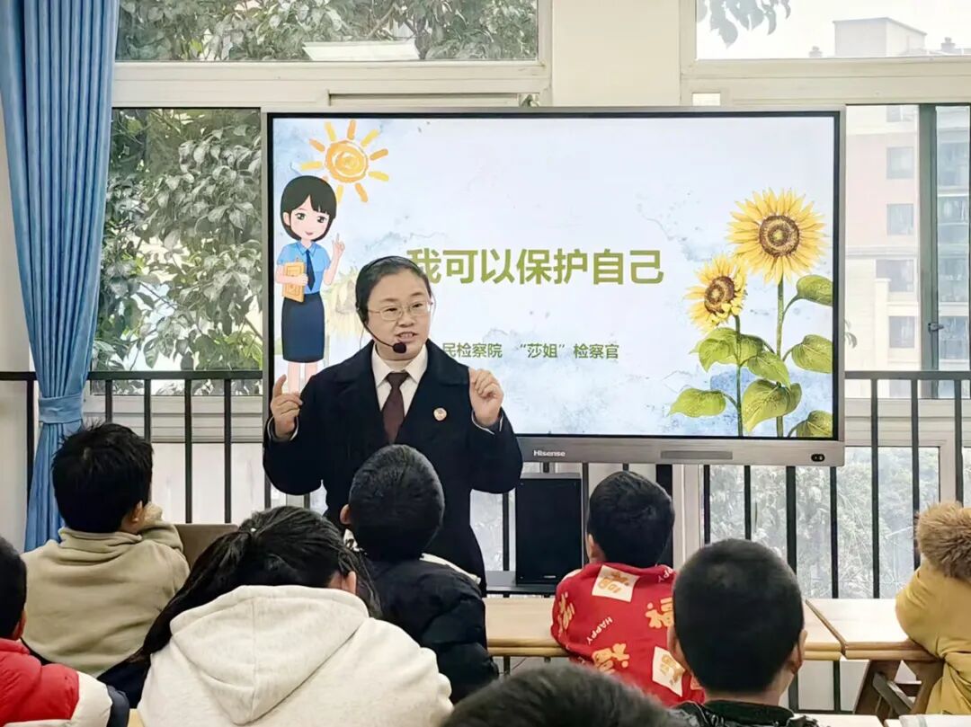 课程紧扣校园安全、道路安全、居家安全、动画安全四大核心维度设计,为了让孩子们更容易理解和接受,检察官采用情景模拟、动漫展示、互动问答等喜闻乐见的形式展开教学,既引导孩子们认识身体隐私部位、树立自我保护意识,也让大家清晰知晓欺凌行为的违法性与危害性,同时教会孩子们在网络世界中保护个人隐私、辨别不良信息。通过生动的讲解,孩子们深刻理解到,法律既是日常行为的底线,更是自我保护的有力武器,也在轻松活泼的氛围中,系统学会了识别安全风险、坚决拒绝侵害、及时寻求帮助的具体方法。“原来动画片里有些行为是不能模仿的!” 课后,一名二年级学生认真地说道。课程结束后,检察官还为孩子们送上了图文并茂的自我保护手册,让法治的种子在孩子们的幼小心灵中生根发芽。