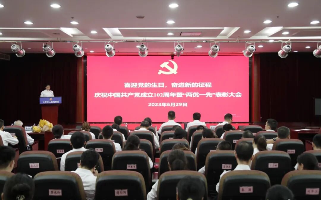 6月29日,长寿区检察院召开“喜迎党的生日,奋进新的征程”庆祝中国共产党成立102周年暨“两优一先”表彰大会。在职全体党员同志和其他干警职工,以及退休党支部党员代表参加会议。院党组成员、政治部主任江瑛主持会议。