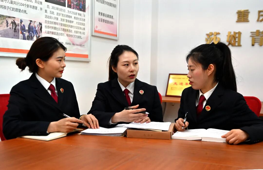 重庆市大足区检察院承办检察官黎佳(中)与检察官助理就跨省帮教方案进行讨论
