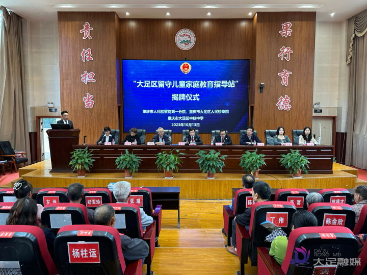 揭牌仪式上,区检察院、区教委相关负责人先后围绕如何发挥好家庭教育指导站作用、进一步推进家庭教育工作提出了一系列工作要求。随后,市检察院第一分院、区检察院、中敖中学相关负责人共同为“大足留守儿童家庭教育指导站”揭牌。