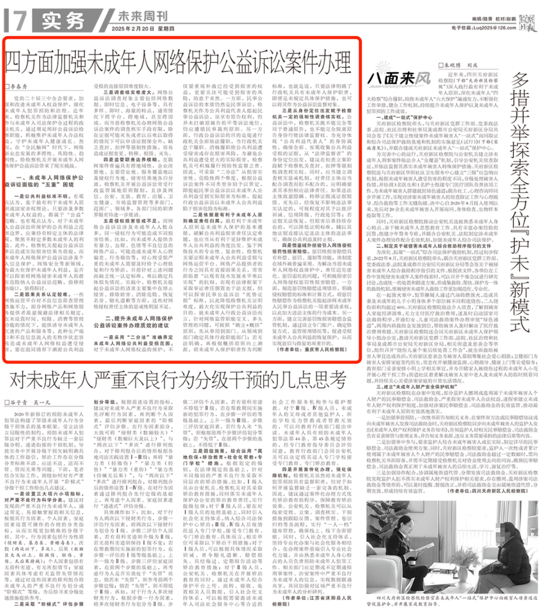 四是借鉴域外经验引入网络侵权惩罚性损害赔偿。惩罚性损害赔偿具有补偿、惩罚、遏制等功能,该制度在域外被普遍采用。为解决当前未成年人网络权益保护中,责任追究虚化、惩罚弱化的问题,可积极探索引入网络侵权惩罚性损害赔偿。一方面,规范惩罚性赔偿适用情形,明确侵权赔偿的标准和计算方式,将惩罚性赔偿作为检察机关提起涉网未成年人民事公益诉讼的一项重要请求权,以此加大违法主体的行为成本。另一方面,建立完善惩罚性损害赔偿金监管机制,通过设立专门账户、确定修复方式、监管使用情况等,促进受损未成年人公共利益的恢复保护,从而实现惩罚与修复的双重目的。