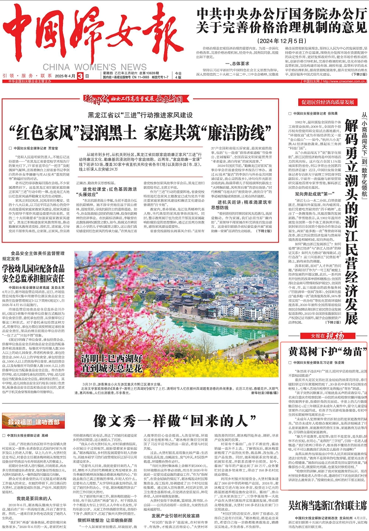 2025年4月3日,《中国妇女报》头版刊登《黄葛树下护“幼苗”》一文,内容如下: