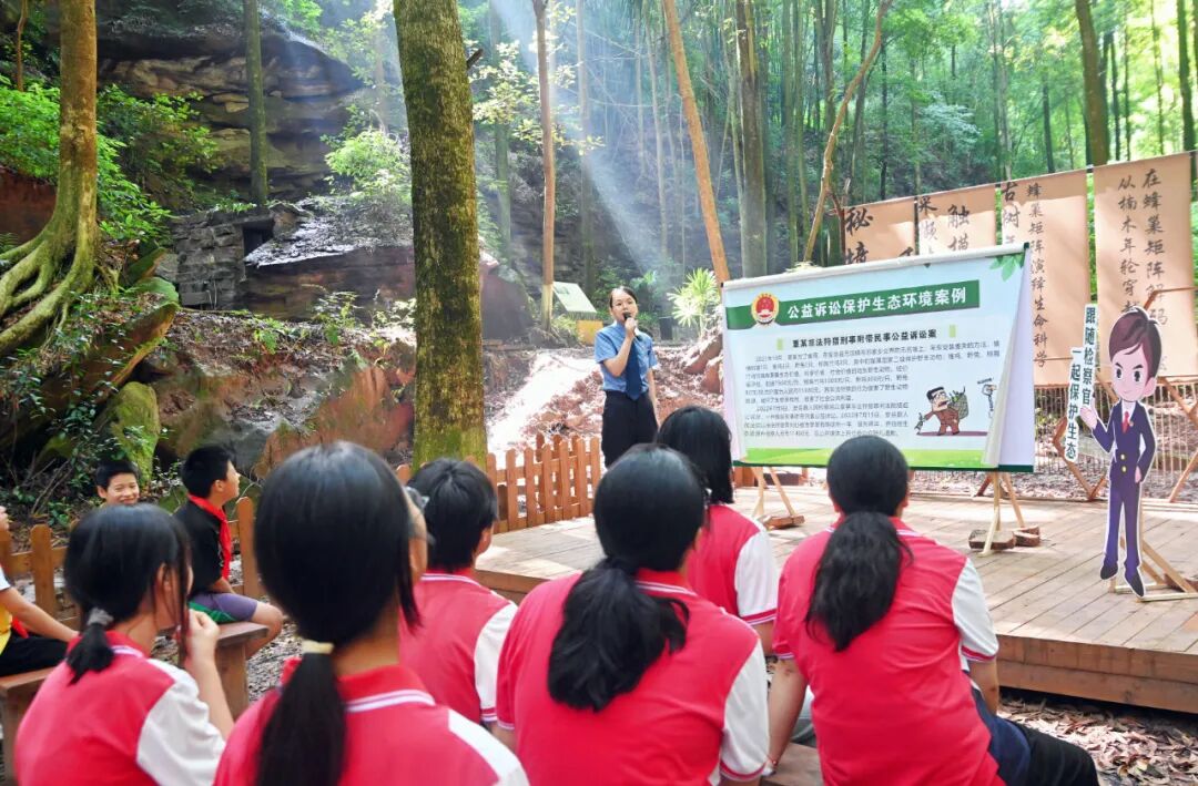 九月的大足区巴蜀雅楠景区,绿意盎然。一场别开生面的法治课在这片天然的生态教室温情上演。