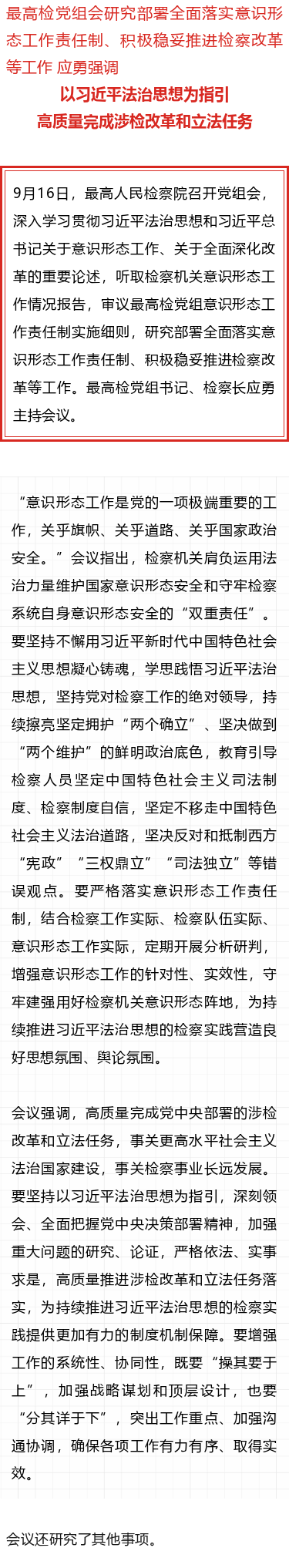 最高检党组会研究部署积极稳妥推进检察改革等工作
