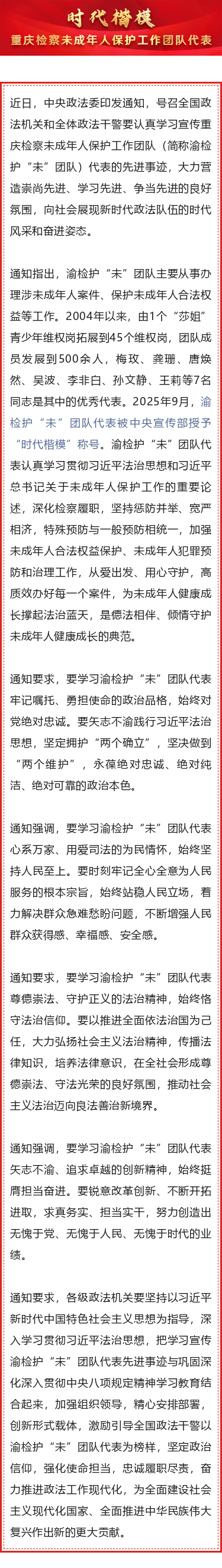中央政法委印发通知要求学习宣传重庆检察未成年人保护工作团队代表先进事迹