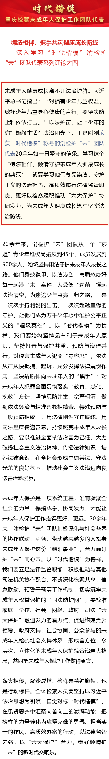 检察日报评论员文章:德法相伴,携手共筑健康成长防线