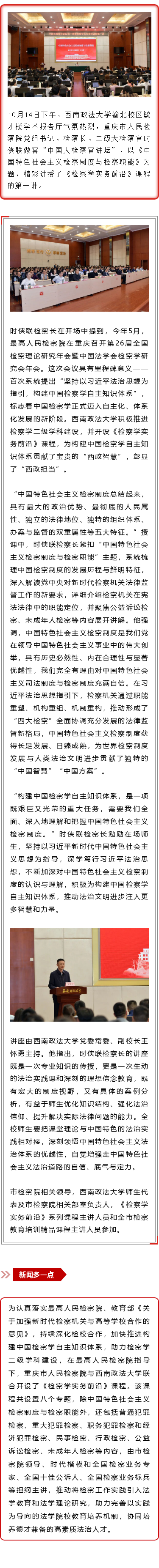 大检察官首讲开课,《检察学实务前沿》课程亮相西南政法大学