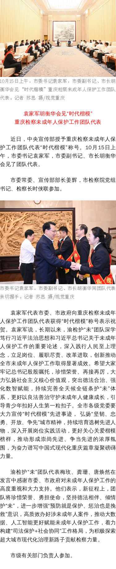 袁家军胡衡华会见“时代楷模”重庆检察未成年人保护工作团队代表