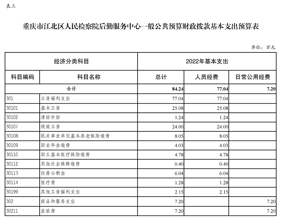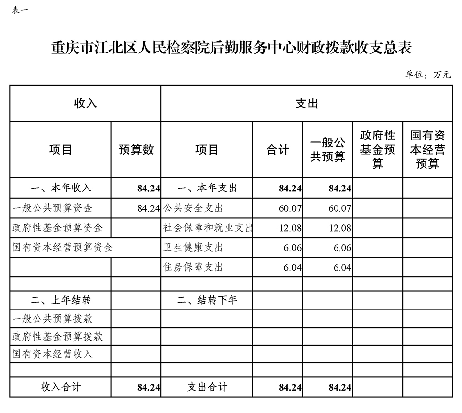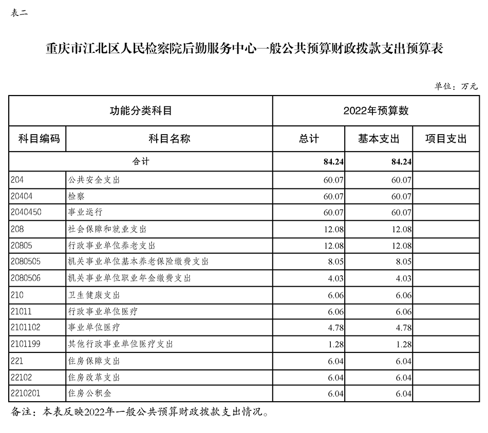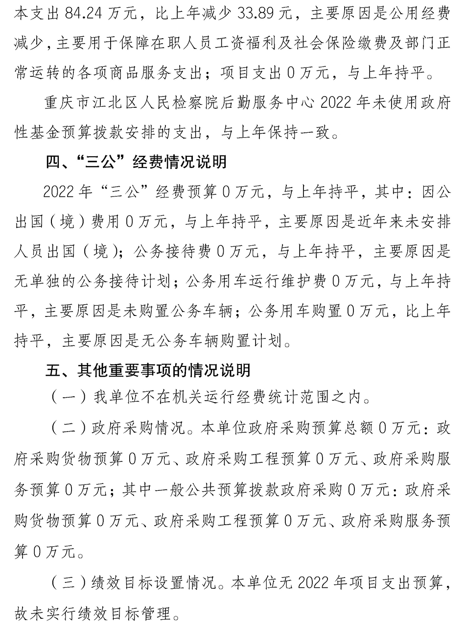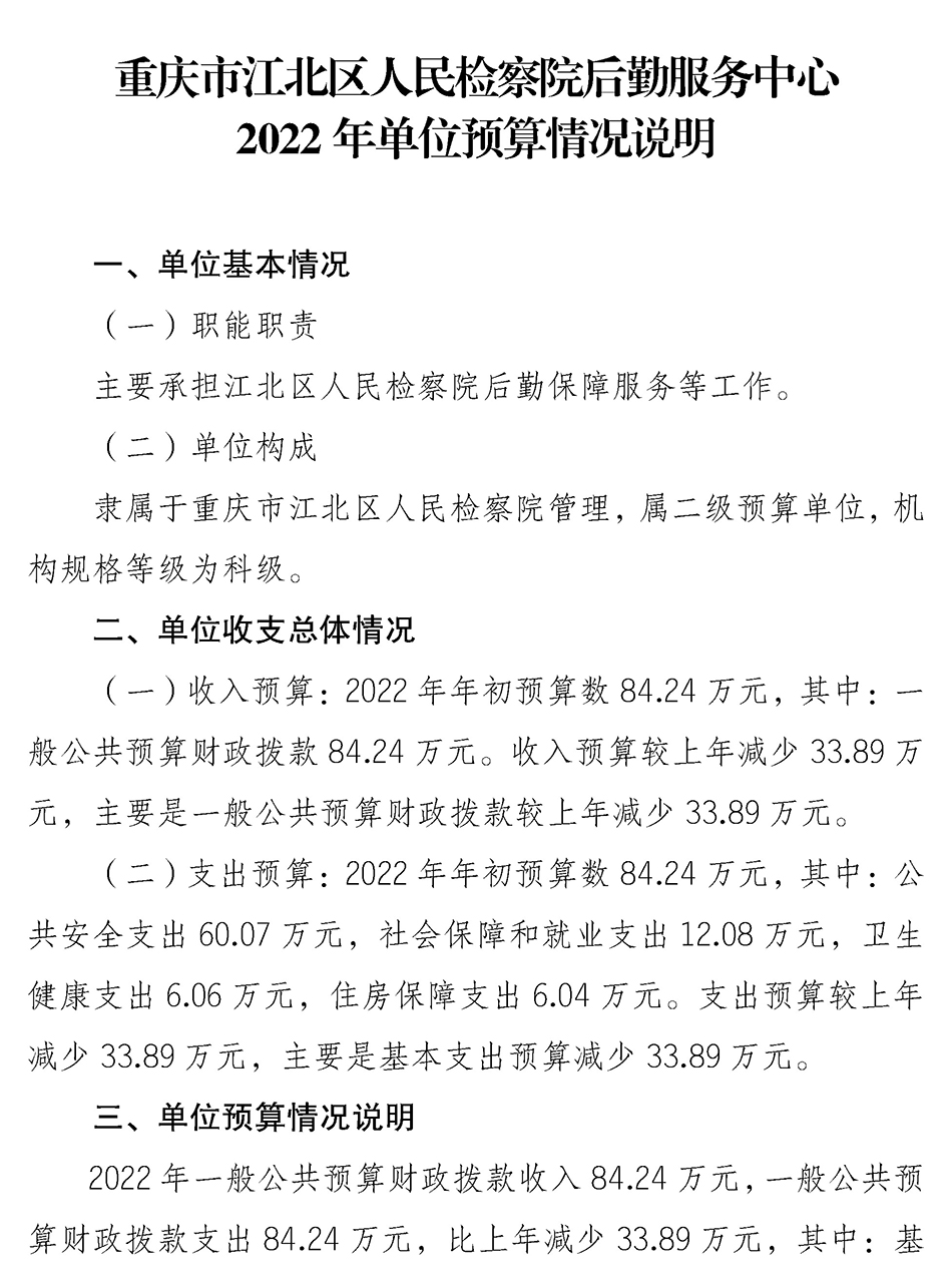 重庆市江北区人民检察院后勤服务中心2022年度预算公开